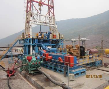 該鉆機承載部分采用了撬裝式底座平臺拼接,前臺轉(zhuǎn)盤平面高度為5.2米,后臺高度為1.5米,底座外形尺寸19580×10640。起升裝置配K型井架,其有效高度達到43米,六輪天車并配置起重修理架。JC40絞車為低位安裝全封閉式,最大輸入功率735KW,最大快繩拉力250KN,使用Φ32mm鋼絲繩。旋轉(zhuǎn)系統(tǒng)由通徑700mm的ZP-275轉(zhuǎn)盤以及SL-225的水龍頭等組成。動力部分配置了功率為588KW的PZ8V190和功率為882KW的PZ12V190B柴油機,傳動系統(tǒng)為整體鏈條并車箱。配套我公司首次自主設(shè)計制造的固控循環(huán)系統(tǒng),由4個40立方的泥漿處理罐、1個40立方的泥漿儲備罐以及振動篩、除砂器等構(gòu)成。操縱控制系統(tǒng)采取氣動控制。該設(shè)備的采購及設(shè)計標(biāo)準(zhǔn)均符合API規(guī)范。