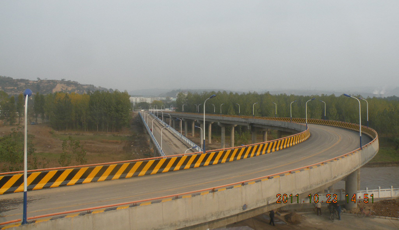 國電霍州發(fā)電廠跨汾河公路大橋東接國道108線(霍侯一級(jí)公路),西連電廠運(yùn)煤公路,東接口處南有霍州礦務(wù)局木材加工廠,北有個(gè)體汽車修理廠,居民較少。向西跨越汾河進(jìn)入電廠廠區(qū)后要上跨電廠主要出入道路。橋梁分左、右幅:左幅主要承擔(dān)電廠職工的生產(chǎn)、生活用車通行;右幅主要承擔(dān)電廠運(yùn)煤、運(yùn)渣等車輛通行。終點(diǎn)要與國道108線(霍侯一級(jí)公路)相連接,接點(diǎn)位置位于國道108線K826+160處。