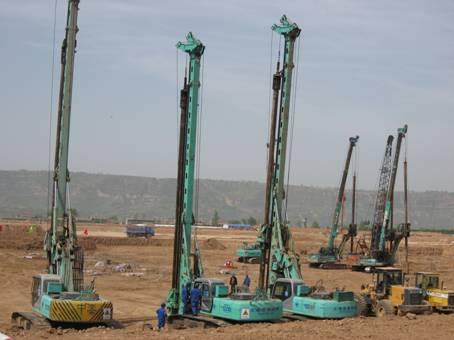 我公司共完成了5#機(jī)組配套的主廠房、煤倉間、主變、升壓站架構(gòu)、鍋爐補(bǔ)給水間、爐前兩機(jī)公用其他設(shè)施地基處理。地基處理采用干作業(yè)旋挖鉆孔灌注樁,共完成φ900灌注樁727根,φ800灌注樁584根,φ650灌注樁246根,混凝土19573.5m3。
