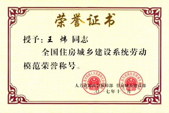 為進(jìn)一步激勵全國住房城鄉(xiāng)建設(shè)系統(tǒng)廣大干部職工的積極性和創(chuàng)造性,努力推動住房城鄉(xiāng)建設(shè)工作上新臺階,人力資源社會保障部、住房城鄉(xiāng)建設(shè)部在全國住房城鄉(xiāng)建設(shè)系統(tǒng)內(nèi),開展了先進(jìn)集體和先進(jìn)個人的評選活動。通過逐級推薦,由人力資源社會保障部和住房城鄉(xiāng)建設(shè)部最終審定,決定對197個先進(jìn)集體,381名先進(jìn)工作者,414名勞動模范進(jìn)行表彰。我公司工會主席王煒同志榮獲全國住房城鄉(xiāng)建設(shè)系統(tǒng)勞動模范榮譽稱號。