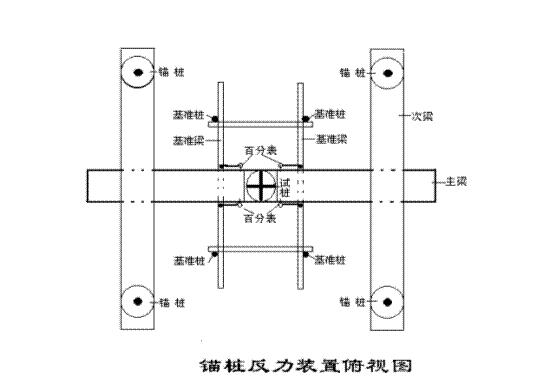 錨樁反力裝置就是將被測(cè)樁周圍對(duì)稱的幾根錨樁用錨筋與反力架連接起來,依靠樁頂?shù)那Ы镯攲⒎戳茼斊?,由被連接的錨樁提供反力,提供反力的大小由錨樁數(shù)量,反力架強(qiáng)度和被連接錨樁的抗拔力決定。錨樁反力裝置一般不會(huì)受現(xiàn)場條件和加載噸位數(shù)的限制,當(dāng)條件允許,采用工程樁作錨樁是最經(jīng)濟(jì)的。
