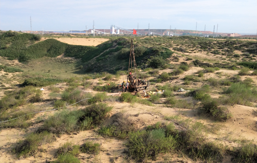 擬建場地位于陜北黃土高原北緣與毛烏素沙漠東南緣的接壤地帶,上部地層為風(fēng)積沙,下部為侏羅系延安組砂質(zhì)泥巖和砂巖。初步查明風(fēng)積砂層的厚度及其物理力學(xué)性質(zhì),查明下部基巖的埋深,及初步查明地下水的埋藏條件、地下水類型、補給排泄條件,調(diào)查其變化幅度是本工程的關(guān)鍵點和重點。