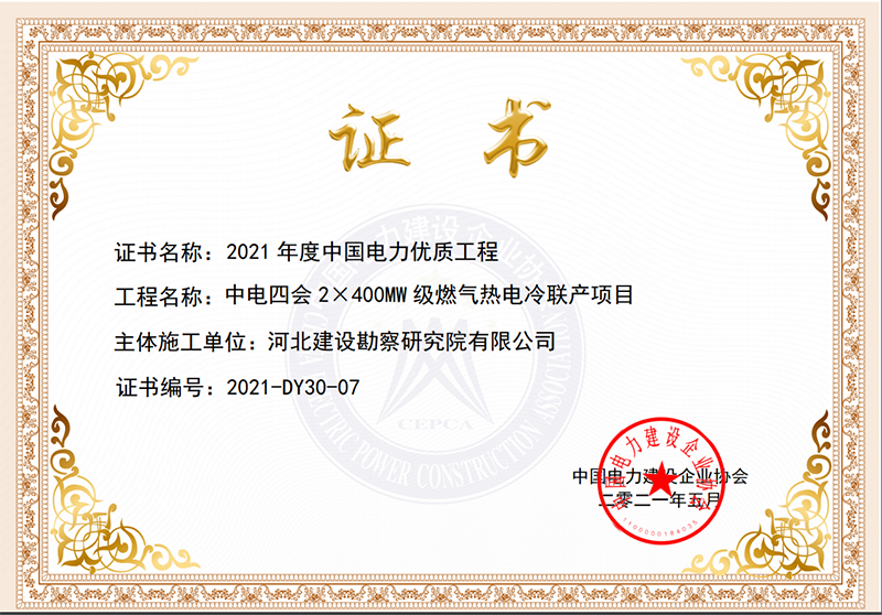 近日,中國電力建設(shè)企業(yè)協(xié)會公布了2021年度中國電力優(yōu)質(zhì)工程評審結(jié)果,我公司作為中電四會2×400MW級燃?xì)鉄犭娎渎?lián)產(chǎn)項目主體施工單位,榮獲2021年度中國電力行業(yè)優(yōu)質(zhì)工程獎。