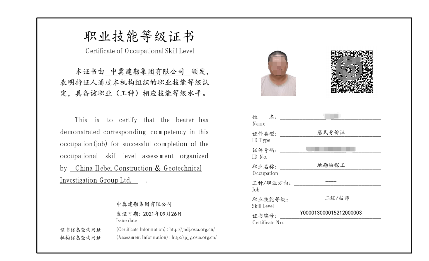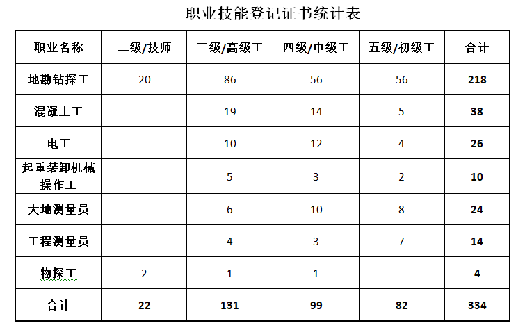 根據(jù)《國家職業(yè)技能標(biāo)準(zhǔn)》,公司按照取得的職業(yè)技能等級(jí)認(rèn)定范圍,結(jié)合公司制度及內(nèi)部認(rèn)定的工人技術(shù)等級(jí)情況,制定了《中冀建勘集團(tuán)有限公司職業(yè)技能等級(jí)套改方案》,組織開展了334名技術(shù)工人職業(yè)技能等級(jí)認(rèn)定工作,取得了職業(yè)技能等級(jí)證書。同時(shí),根據(jù)政府相關(guān)政策,申請(qǐng)取得了相應(yīng)的補(bǔ)助資金。
