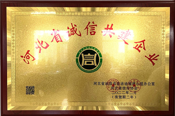 根據(jù)河北省信用辦、河北省信用協(xié)會等七部門印發(fā)的《關(guān)于開展“推進(jìn)誠信建設(shè)共建信用河北”的活動方案》的通知及《關(guān)于2021年度河北省“守合同重信用”企業(yè)申報認(rèn)定工作的通知》,我公司被評為“河北省誠信共建企業(yè)”和“河北省AAA級守合同重信用企業(yè)”。