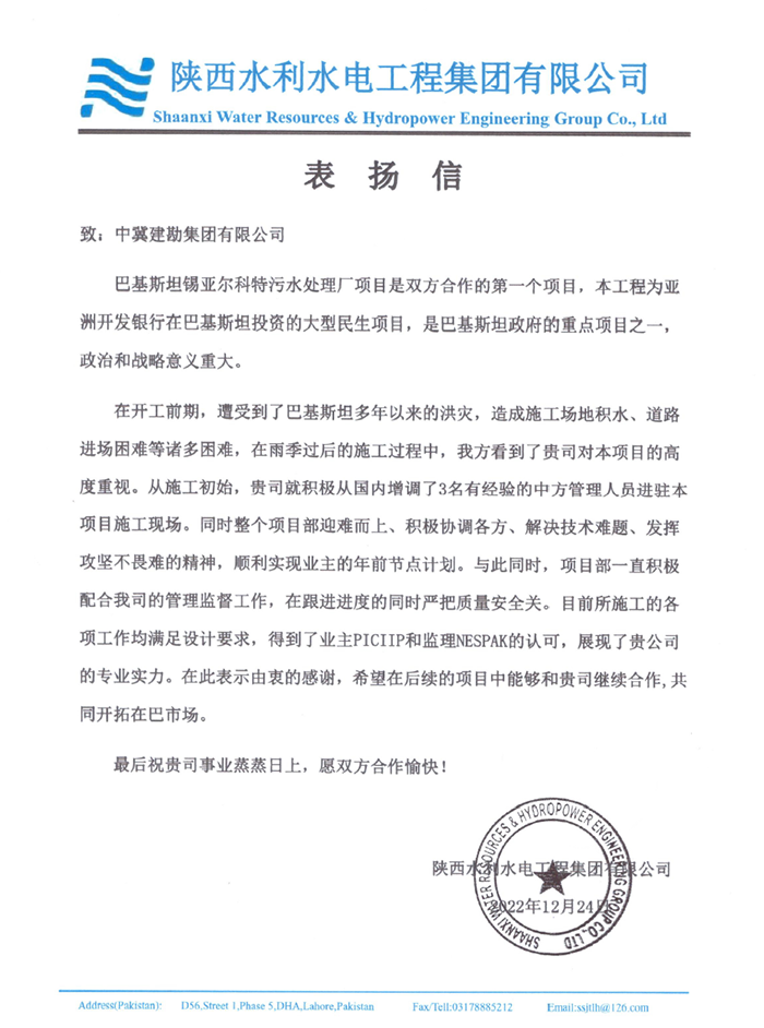 巴基斯坦錫亞爾科特污水處理廠項(xiàng)目是我方和陜西水利水電工程集團(tuán)有限公司合作的第一個(gè)項(xiàng)目,是亞洲開發(fā)銀行在巴基斯坦投資的大型民生項(xiàng)目,是巴基斯坦政府的重點(diǎn)項(xiàng)目之一,政治和戰(zhàn)略意義重大。在工程前期,遭受到了巴基斯坦多年以來的洪災(zāi),造成施工場(chǎng)地積水、道路進(jìn)場(chǎng)等諸多困難。我們整個(gè)項(xiàng)目部高度重視,迎難而上、積極協(xié)調(diào)各方、解決技術(shù)難題、發(fā)揮攻堅(jiān)不畏難的精神,順利實(shí)現(xiàn)業(yè)主的年前節(jié)點(diǎn)計(jì)劃。目前施工的各項(xiàng)工作均滿足設(shè)計(jì)要求,得到了業(yè)主PICIIP和監(jiān)理NESPAK的認(rèn)可,展現(xiàn)了我公司的專業(yè)實(shí)力。業(yè)主希望在后續(xù)的項(xiàng)目中能夠和我公司繼續(xù)合作,共同開拓巴基斯坦市場(chǎng)。