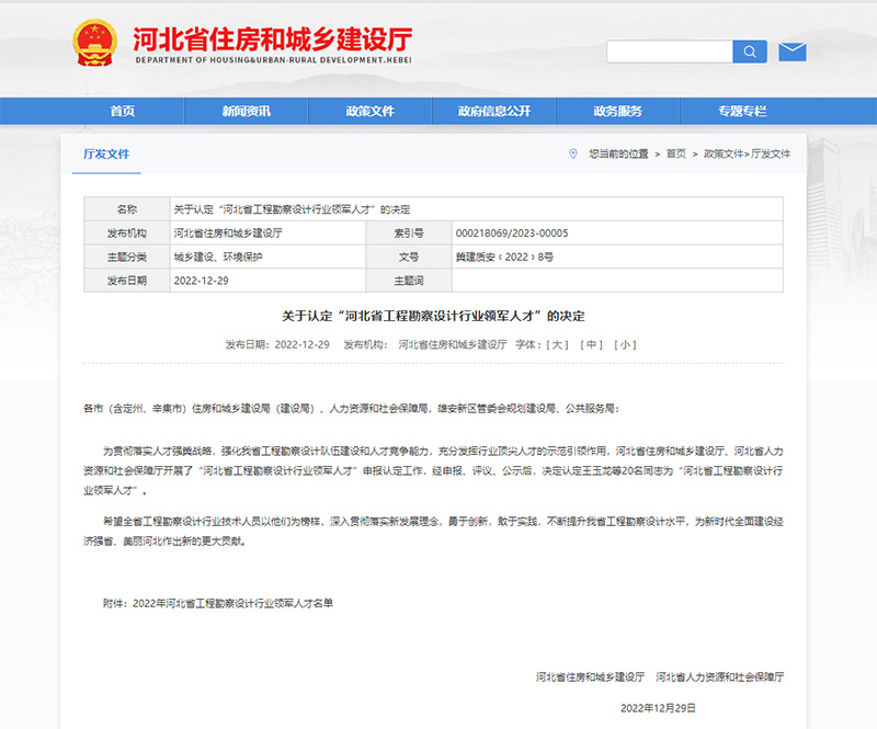 梁書奇榮獲“河北省工程勘察設(shè)計行業(yè)領(lǐng)軍人才”稱號