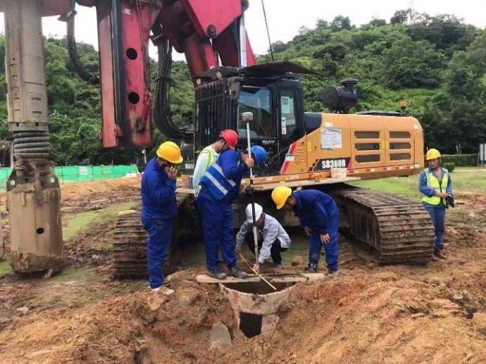 在進行GIS區(qū)域樁基施工過程中,發(fā)現(xiàn)該施工區(qū)域的地下管線走向及位置與建設單位提供的竣工圖不符。項目部積極與設計、監(jiān)理、業(yè)主等單位協(xié)調溝通,采用人工挖探坑、金屬探測儀等方式探明地下管線,在保證施工進度的同時也避免了因地下管線問題造成的施工事故。
