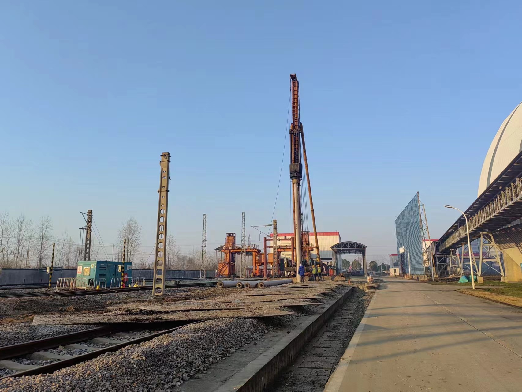 H2標(biāo)段樁基工程于2023年7月11日開工, 2024年1月28日施工完成。本工程因施工區(qū)域較為分散,項目管理難度加大。為此,項目部積極與設(shè)計院就出圖順序進行溝通,提前籌劃安排行進方向的管樁原材料配備和現(xiàn)場道路鋪設(shè)、排水設(shè)施供應(yīng)等后勤保障工作,保證樁機施工的連續(xù)性,確保了建設(shè)單位的工期時間要求。此外,管帶機施工區(qū)域位于三期電廠內(nèi),涉及10kV高壓線拆除、大棚拆遷、樹木移除、監(jiān)控拆除、屏風(fēng)拆除等工作。項目部積極與建設(shè)方協(xié)調(diào)溝通,全力推進施工區(qū)域內(nèi)障礙物拆除和清理工作。因部分樁位在火車鐵軌上,項目部積極與鐵路方溝通,與建設(shè)方、監(jiān)理方謀劃施工方案,采取相應(yīng)措施,圓滿完成了施工任務(wù)。經(jīng)第三方檢測,合格率100%。