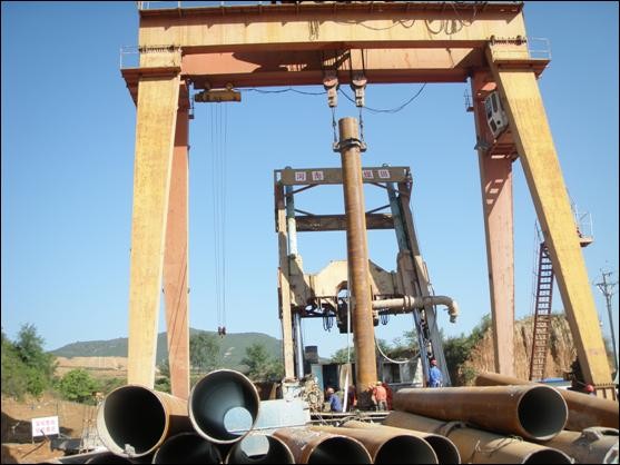 該工程位于山西省高平市泮溝村西北,設計鉆孔直徑1.2m,深度420m,表層套管規(guī)格φ1200mm×18mm螺旋管、工作套管規(guī)格φ820mm×18mm無縫管。