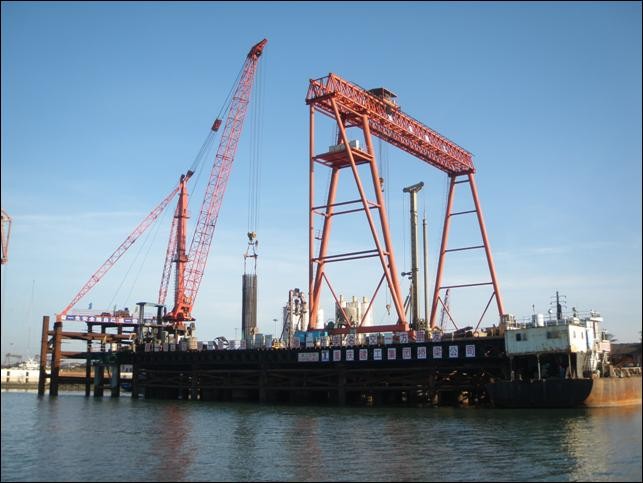 現(xiàn)場(chǎng)水上平臺(tái)施工場(chǎng)景